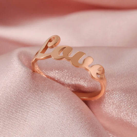 Romantic Hollow Letter LOVE Rings Stainless Steel Light luxury Wedding Ring Elegant Finger Accessories Jewelry Gift for Lovers