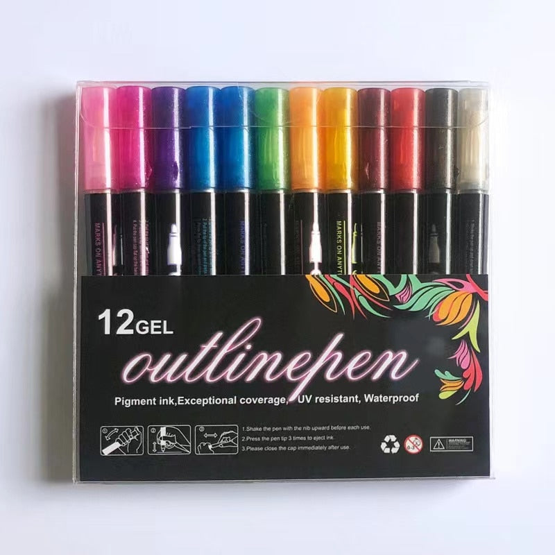 12/24 Color Double Line Outline Pen Markers Outline Marker Pen Highlighter Drawing Scrapbooking Graffiti Greeting Card Art Paint