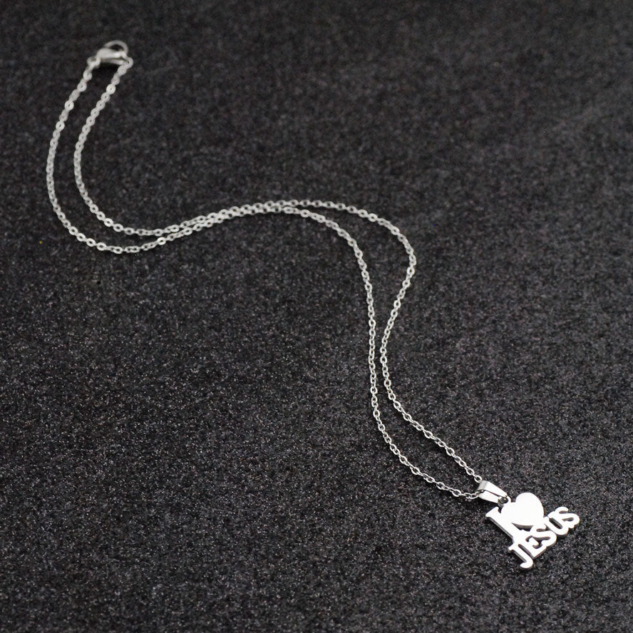 Fashion Stainless Steel Jesus Cross Men Charm Heart Letter Pendant Necklace Jewelry Set Chain Christian Symbol Jewelry Gifts